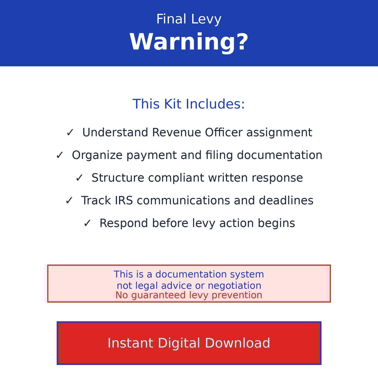 IRS CP90 Final Notice of Intent to Levy Response Kit