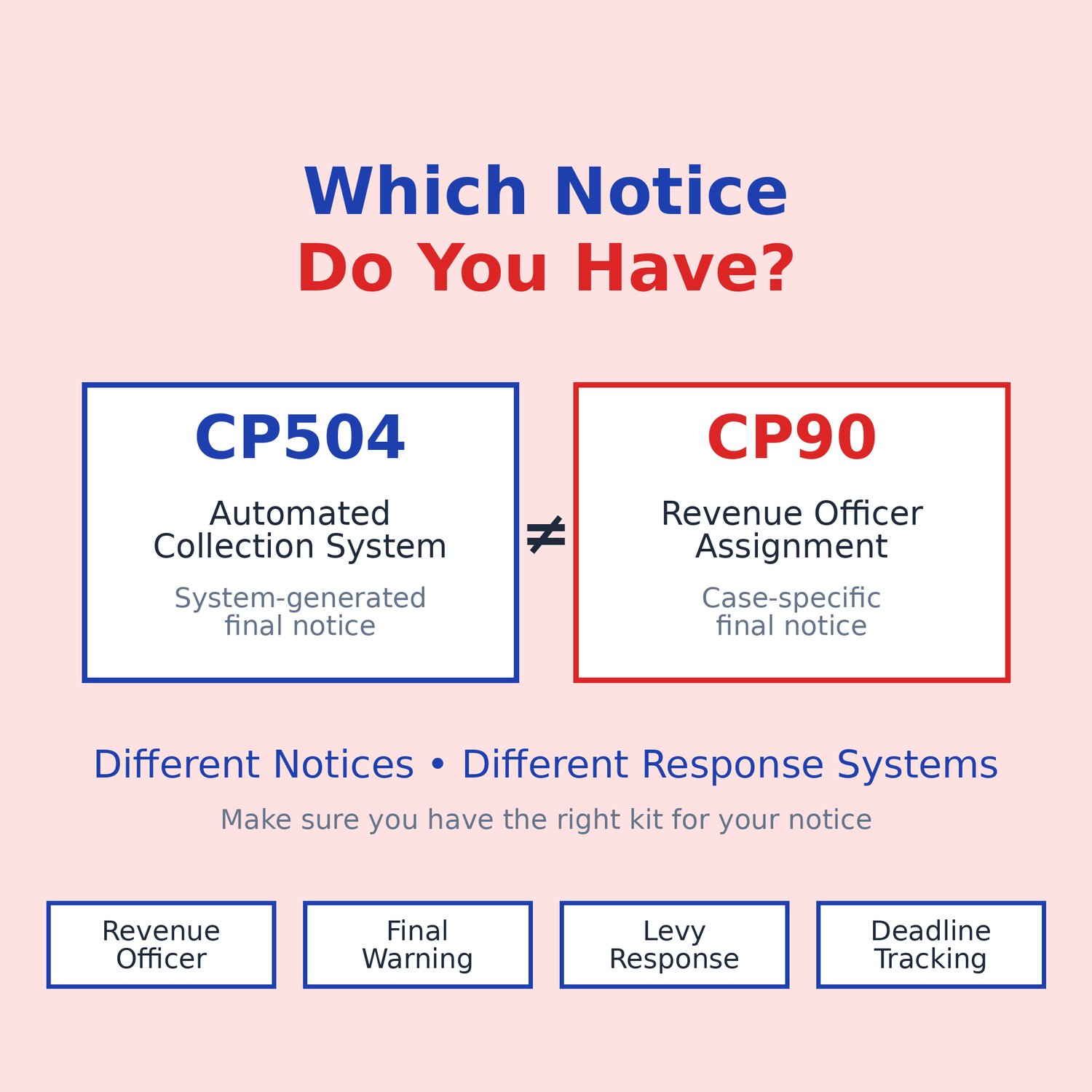 A CP90 notice is a Final Notice of Intent to Levy and Notice of Your Right to a Hearing. This means the IRS may legally seize wages, bank accounts, and other assets if no action is taken within the required timeframe.