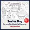 Personalized Birthday Placemat - Kids Activity | Surfer Boy Design | (Digital Download)
