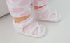 Baby sandals with linked toe straps, in 3ply yarn - Eva