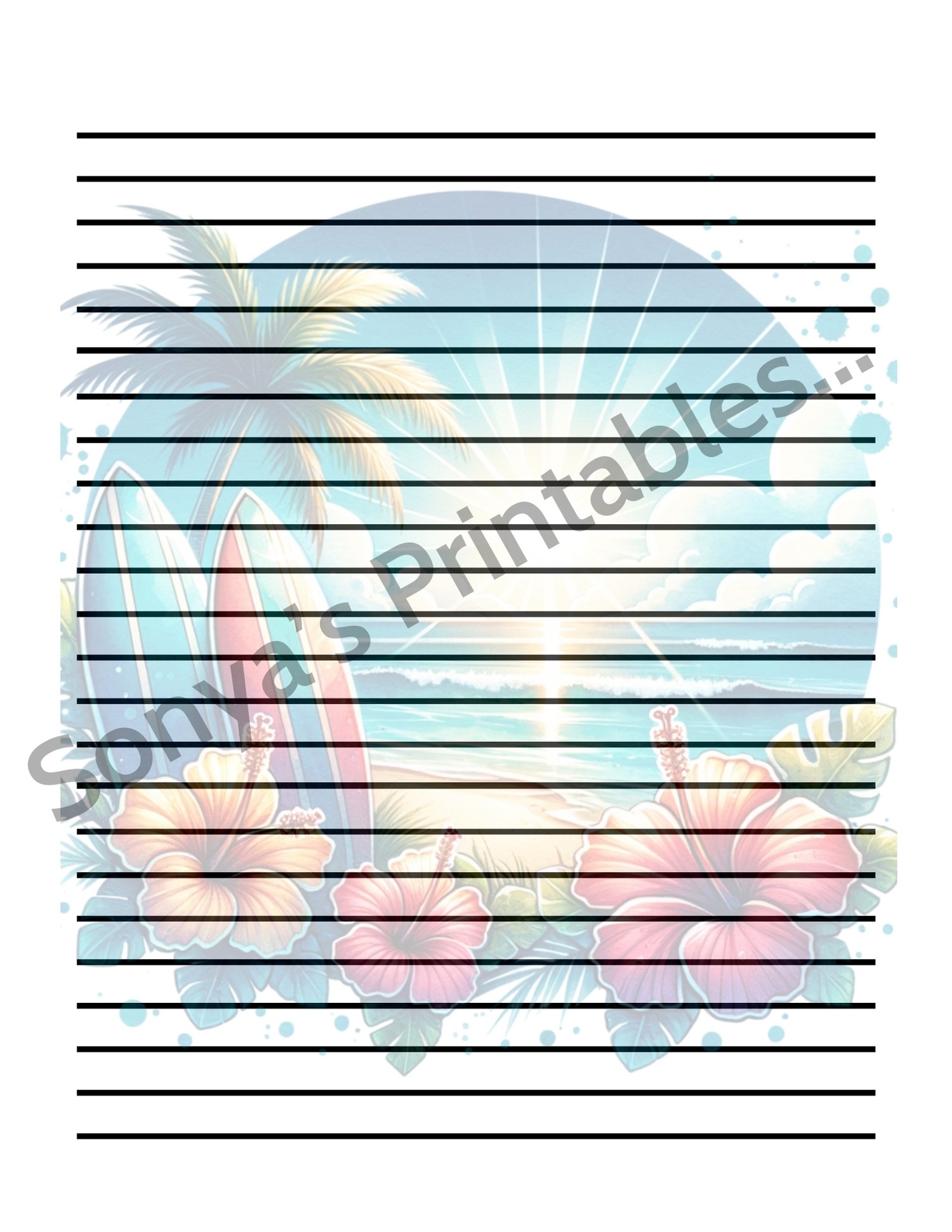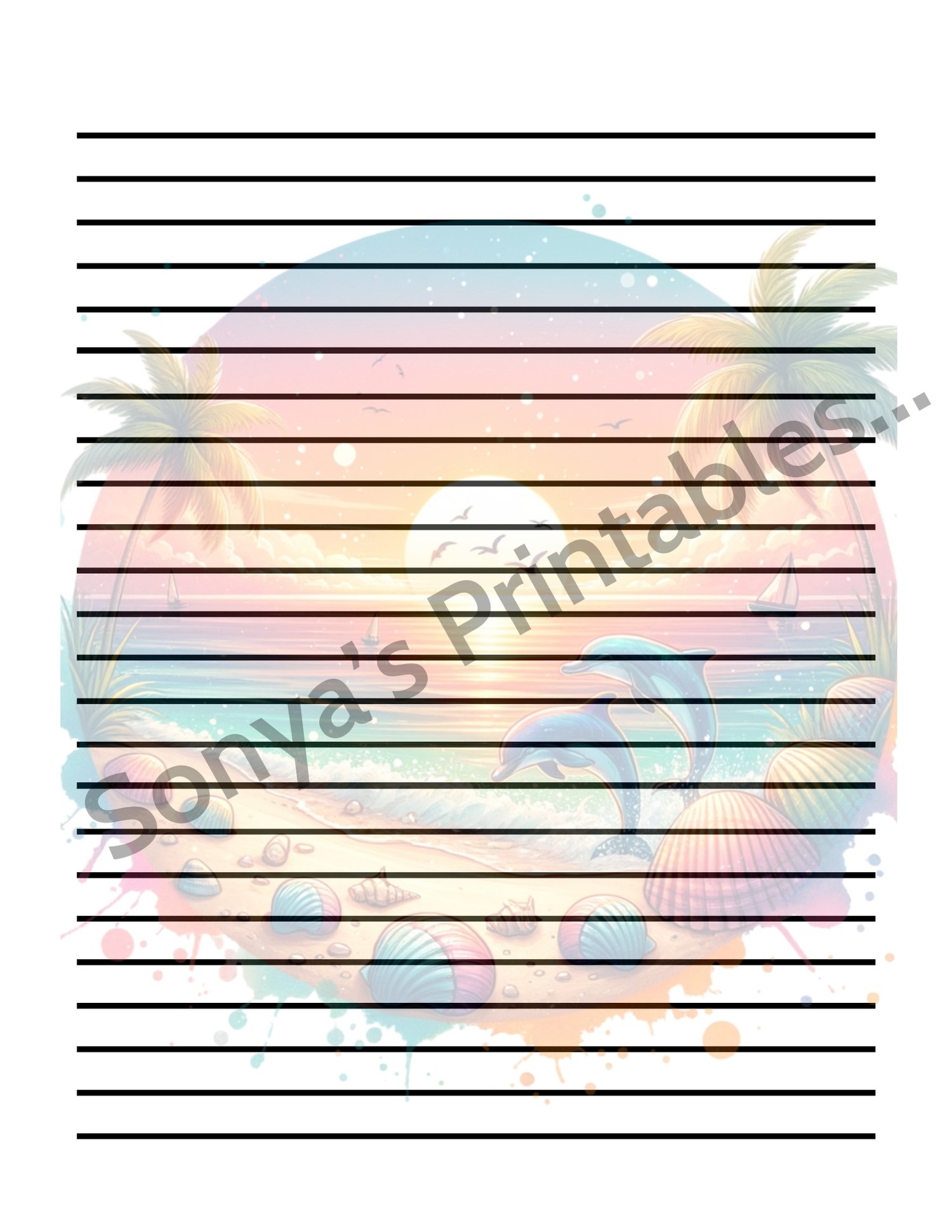 Are you a beach lover who can't get enough of the sun, sand, and surf? Well, you're in luck because our Printable Beach Life Lined Stationery is here to bring a touch of the beach to your everyday life! Whether you use it as stationery or notepaper, you'll feel like you're at the beach with sea shells, sea turtles, dolphins, and surfing right at your fingertips.