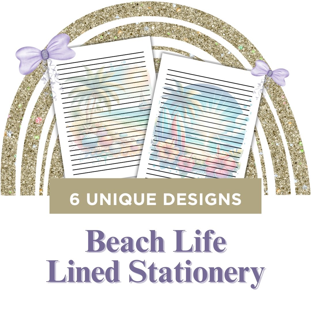 Beach Life Lined Stationery | Seashell Lined Notepaper | Beach Life Writing Paper | Sea Turtle Penpal Paper