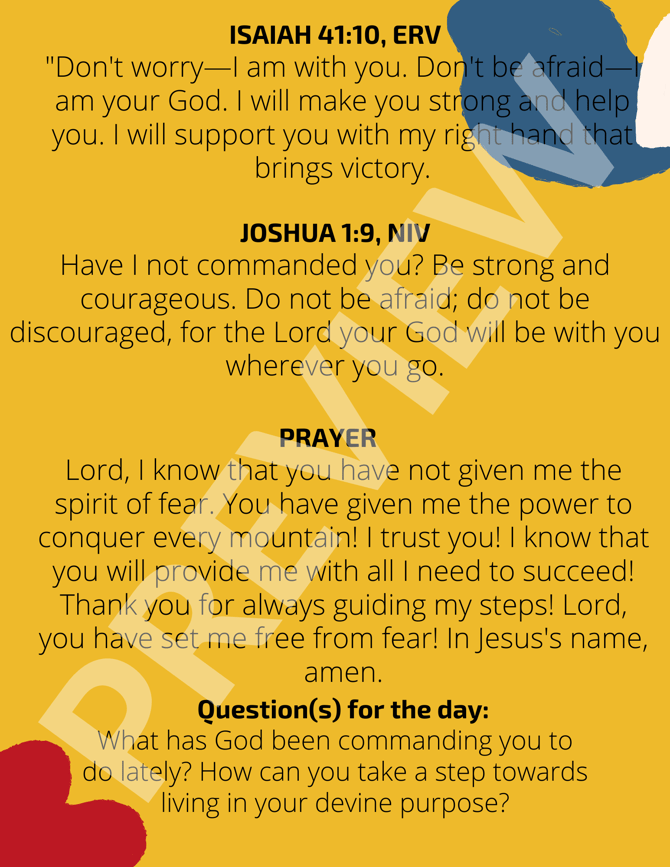 This is a 3-day devotional designed to help you break free from fear, doubt, and additional strongholds that are hindering your spiritual and mental growth!