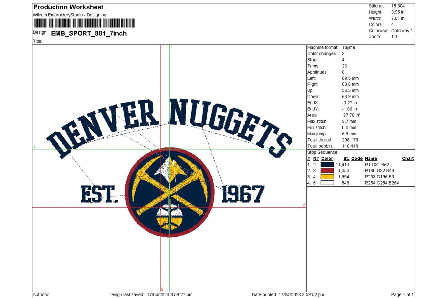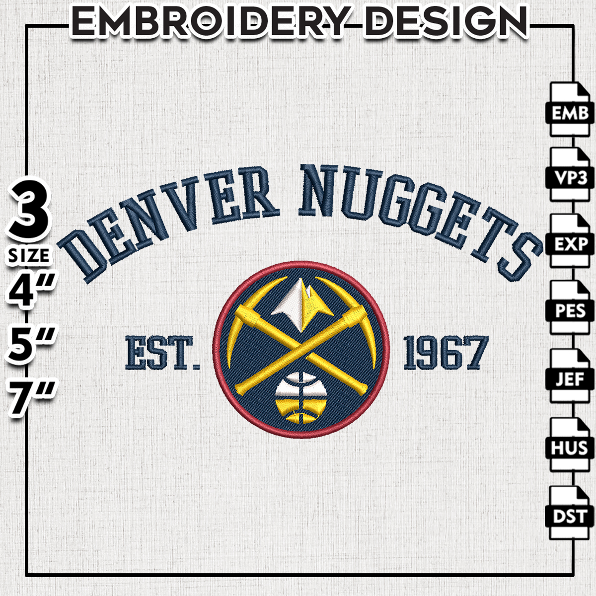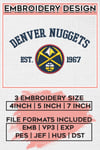 NBA Denver Nugget Team Est Logo Embroidery Files, NBA Denver Nugget Basketball Team Embroidery Designs, NBA Teams, Machine embroidery Digital Download