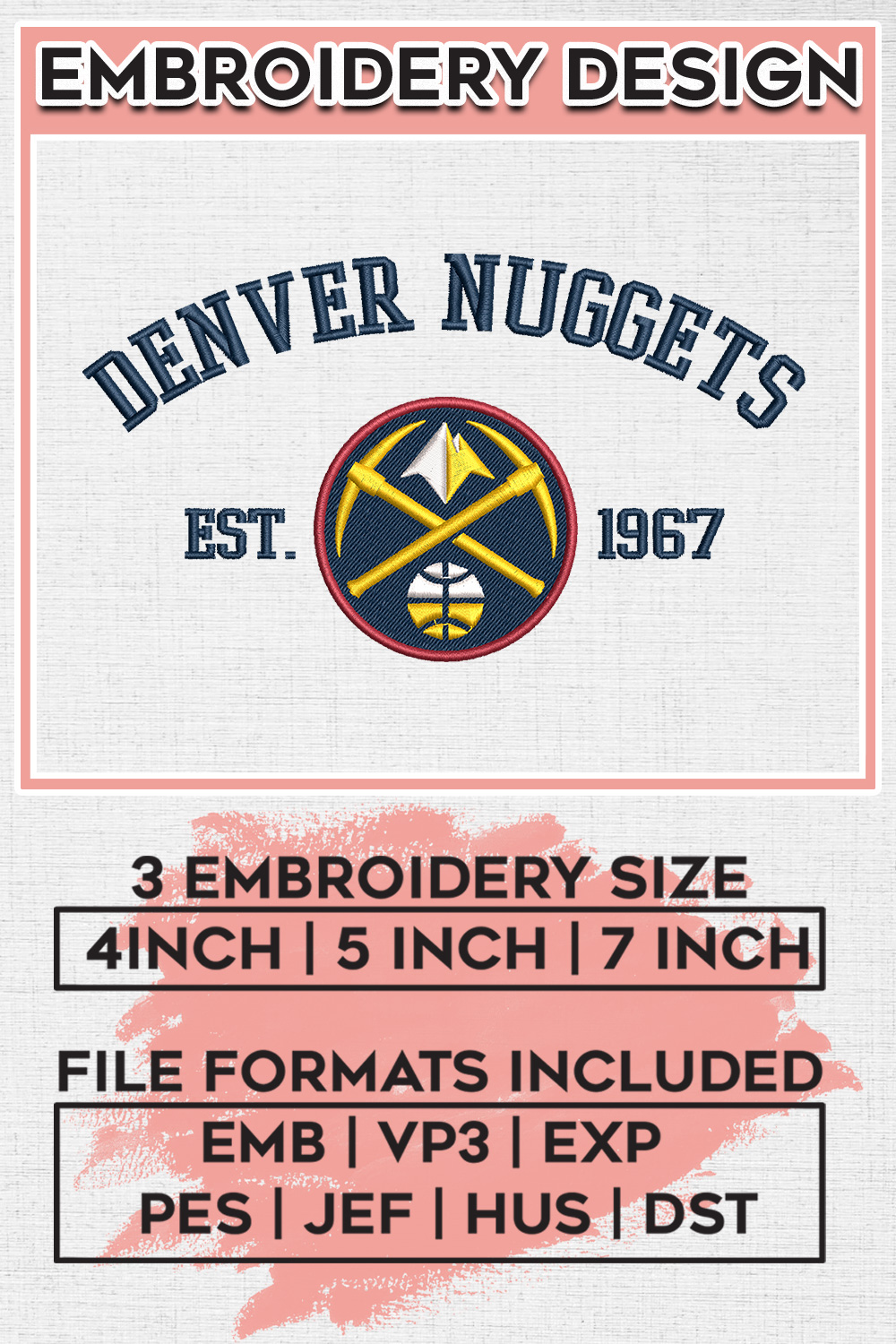 #DenverNuggets #NBALogoEmbroidery #BasketballEmbroidery #EmbroideryFiles #DigitalDownload #MachineEmbroidery #NBAEmbroideryDesigns #NuggetsFans #SportsEmbroidery #BasketballDesigns #EmbroideryPatterns #NuggetsMerch #NBATeams #CustomEmbroidery #EmbroideryArt #NuggetsNation #BasketballCrafts #DIYEmbroidery #SportsDigitalFiles
