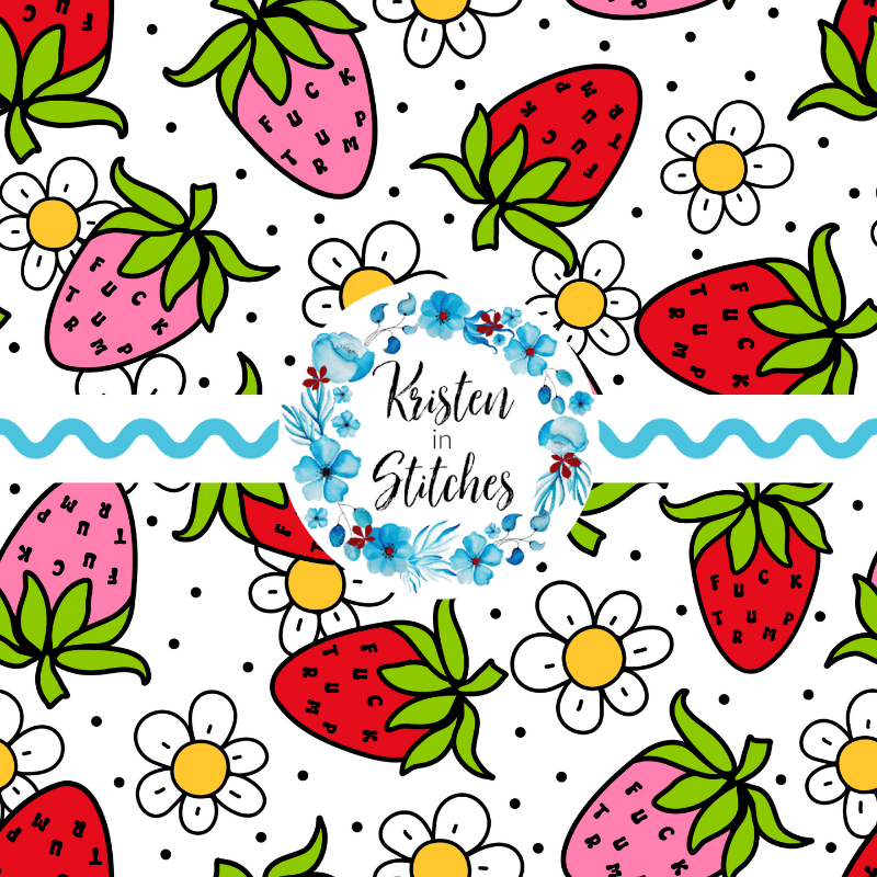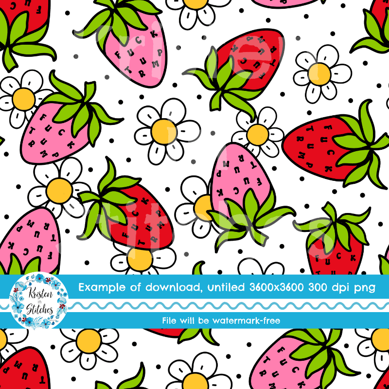 Subtle Strawberries FDT Fuck Trump Floral Seamless Pattern