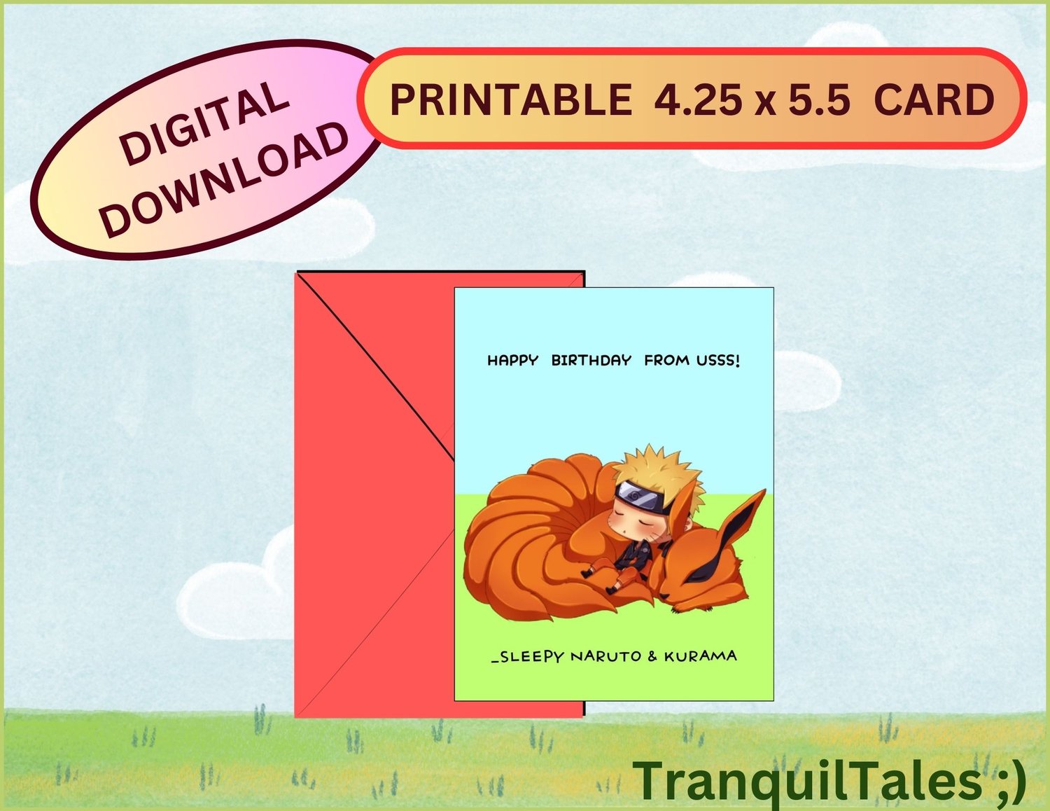KURAMA & NARUTO - NARUTO - BIRTHDAY CARD - 4.25" x 5.5" PDF FILE