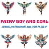 Transform your creative projects with our "Fairy Boy and Girl Clipart" collection! This digital pack includes 20 unique and whimsical images, each in PNG transparent format at a high resolution of 300 dpi and 4096 x 4096 px.