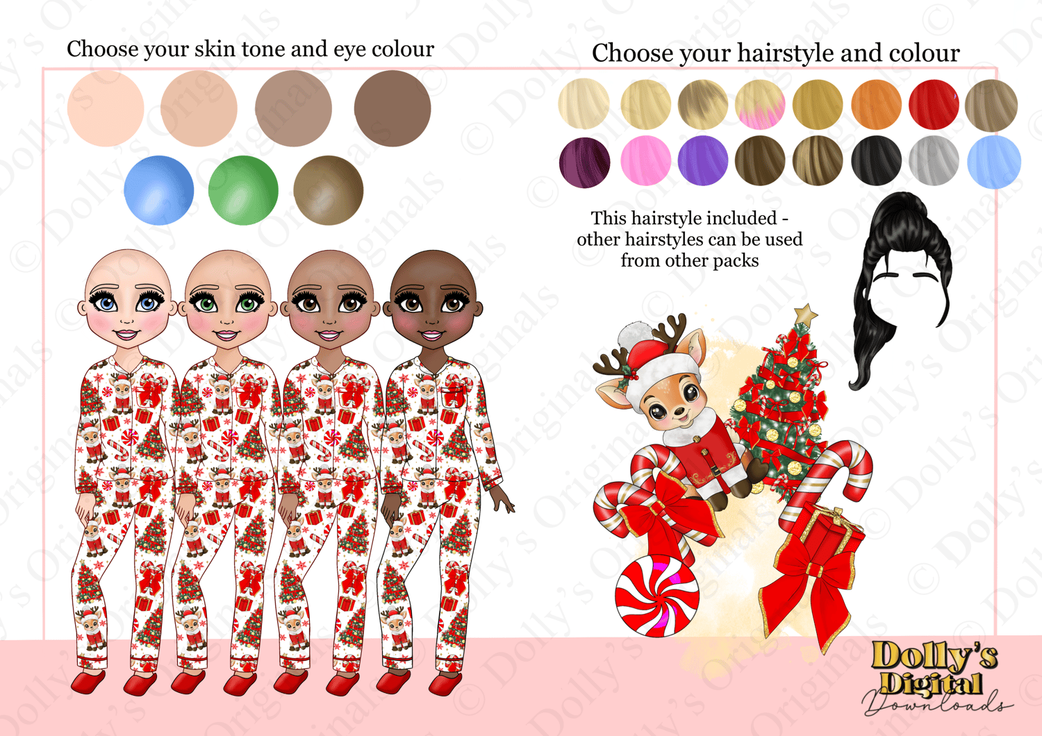 Instant digital download of our Rudolph Reindeer Pyjamas Teen Dolly Character Bundle PNG (29 PNG’s)