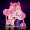 - ears, poms, tail, tattoos, mic, heels, hearts.