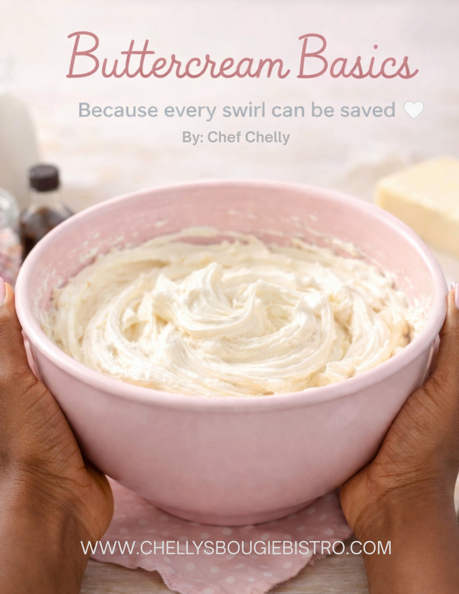 Buttercream Basics is a warm and encouraging guide designed to help bakers build confidence while mastering the essentials of buttercream. Whether you’re just beginning or looking to improve consistency and technique, Chef Chelly gently walks you through the fundamentals with clarity and grace.