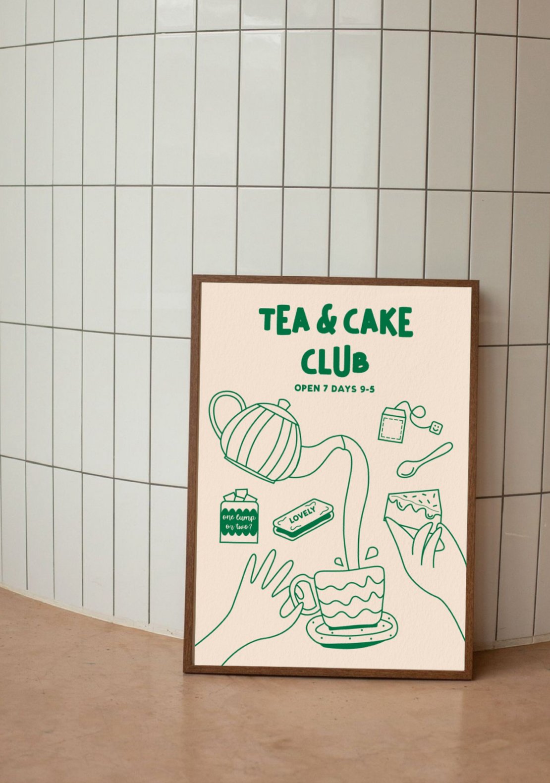 Join the Tea and Cake Club! Indulge in cozy afternoons filled with aromatic teas and delectable cakes. This charming poster invites you to become part of a community that celebrates the simple pleasures of life. Perfect for kitchens, cafes, or meeting spaces, it adds a touch of sweetness and warmth to any environment. Embrace the joy of good company, great tea, and scrumptious cake with this delightful addition to your decor.