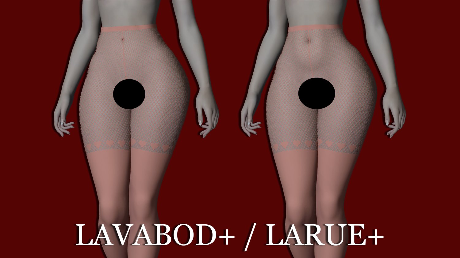 These stockings come in three different patterns, are available for all leg sizes for each body variant (YAB+ Yanilla is there; it was a late addition), and is assigned to bracelets for mixing and matching. All variants of the stockings should accommodate standard and buff torsos; Rue+ and LaRue+ do not have buff variants as the stockings are already adjusted for them.