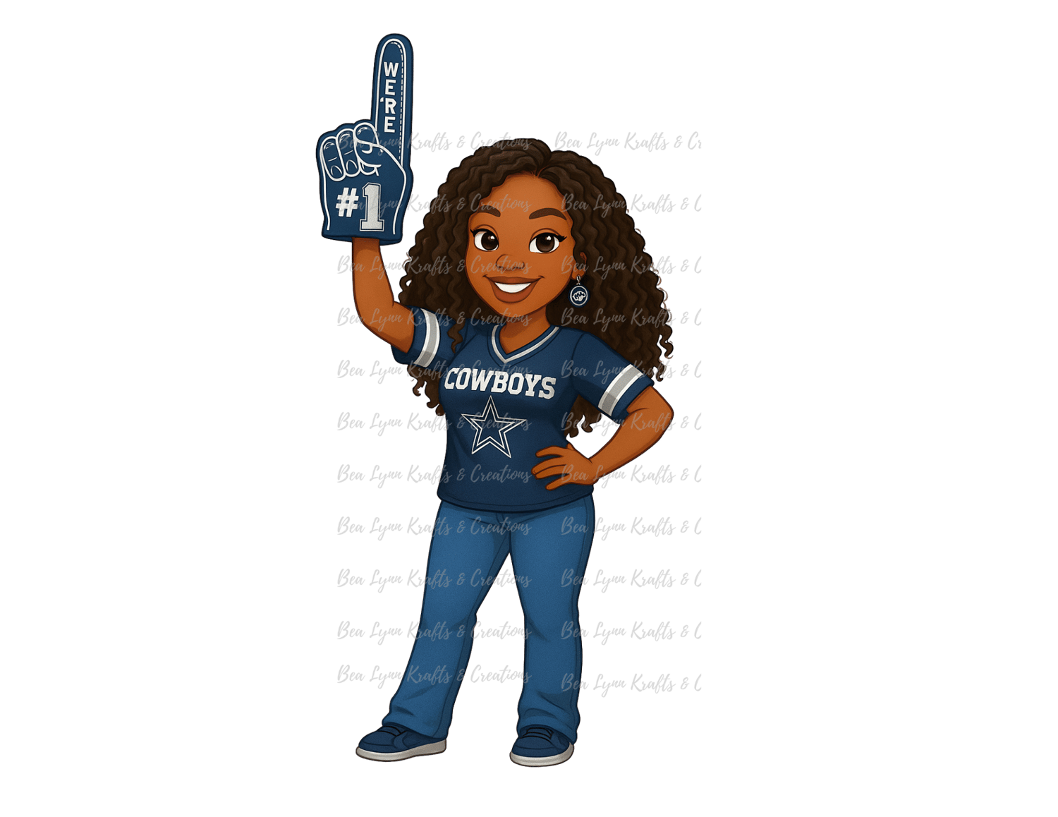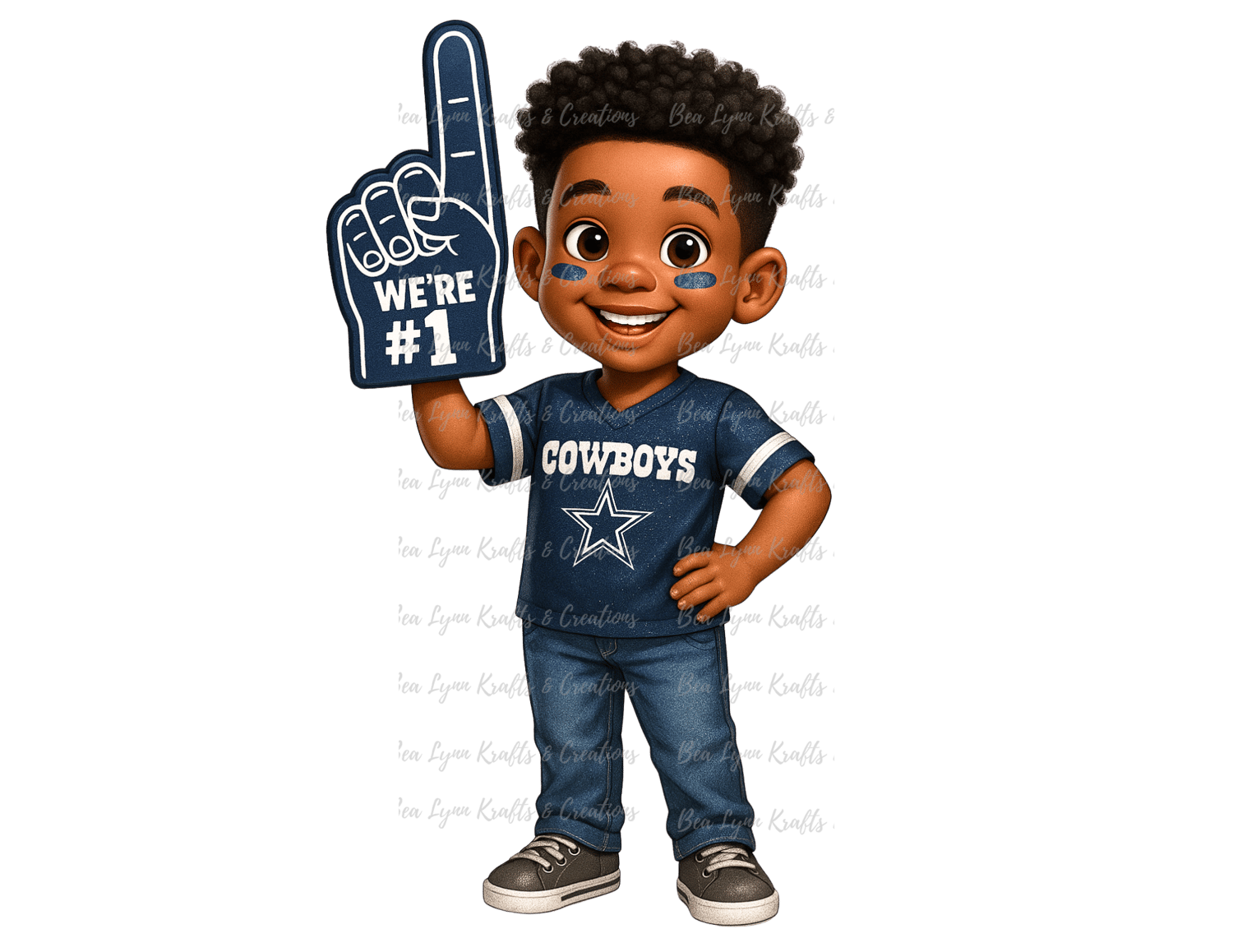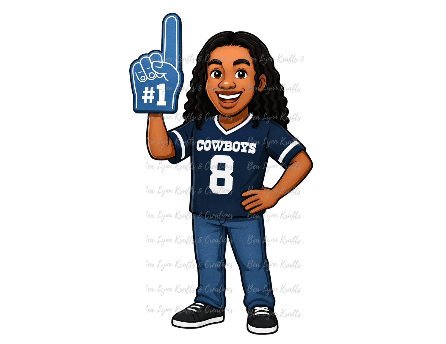 Celebrate team spirit with this exclusive Dallas Cowboys Family Clipart Collection, featuring four vibrant #1 Cowboys transparent PNGs — perfect for digital crafts, shirts, tumblers, and fan-themed projects! This high-resolution set includes a proud mom, dad, little boy, and little girl — all decked out in navy and silver Cowboys gear, holding foam fingers and cheering with big smiles. Each image is transparent for easy layering, commercial-use friendly, and ideal for print-on-demand designs, sublimation, or custom apparel.
