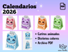 Calendarios tiernos y coloridos, con diseños de gatitos animados para descargar e imprimir.