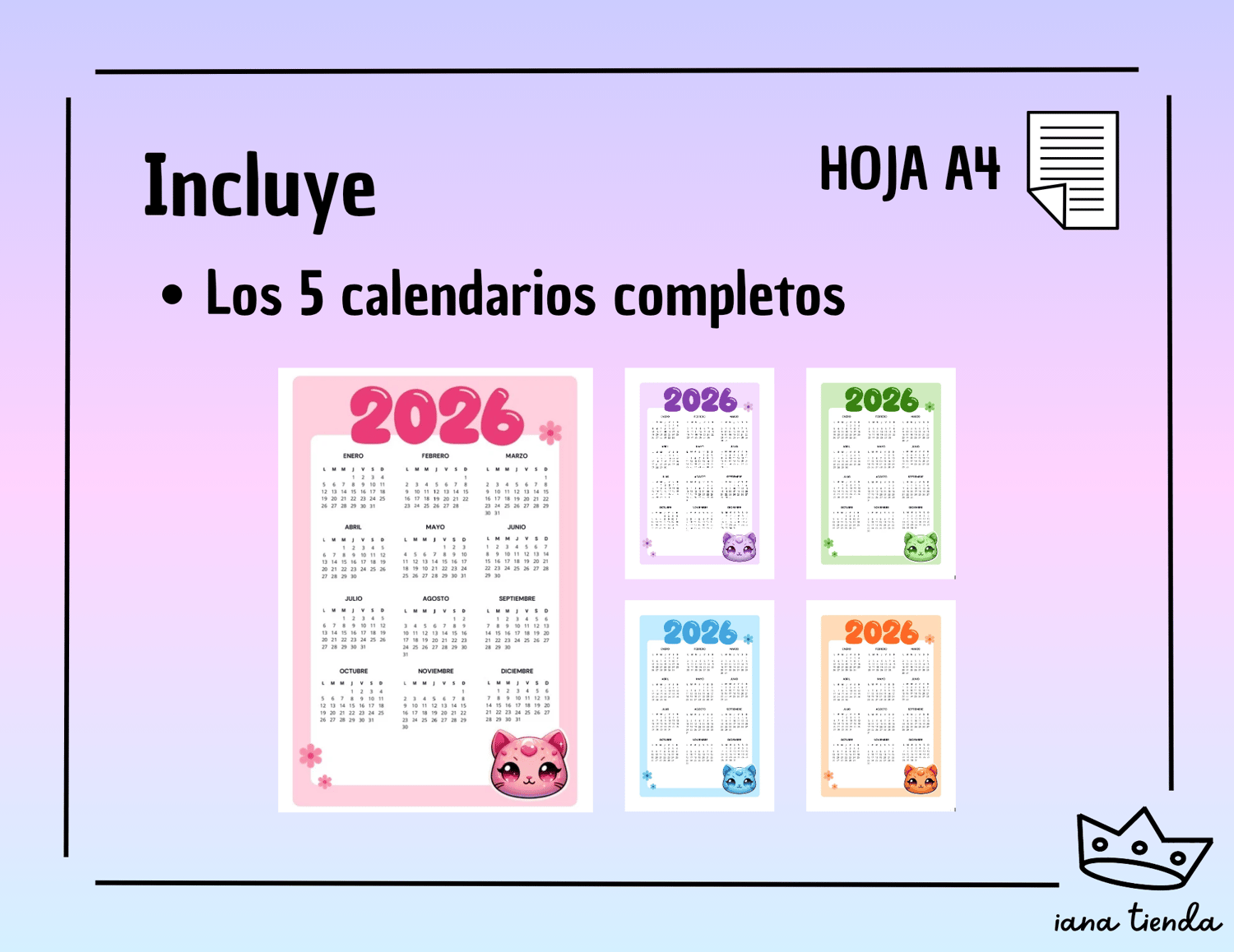 ❥ Calendarios 2026 – PDF listo para imprimir.