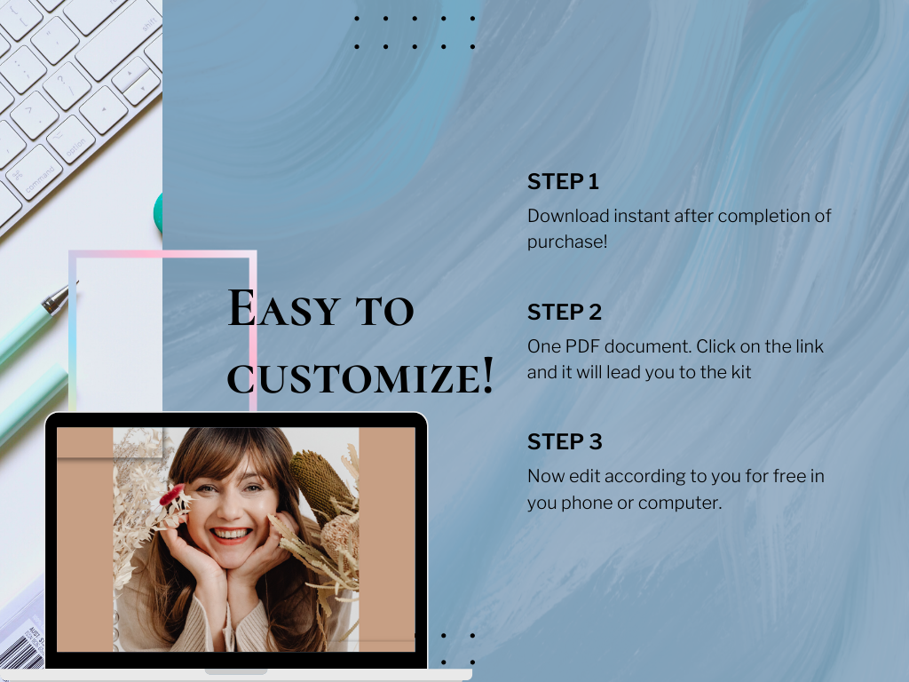 ✔️ Easy to edit on any browser via the Canva website! Duplicate or delete pages, adjust images and text to fit your brand aesthetic!
