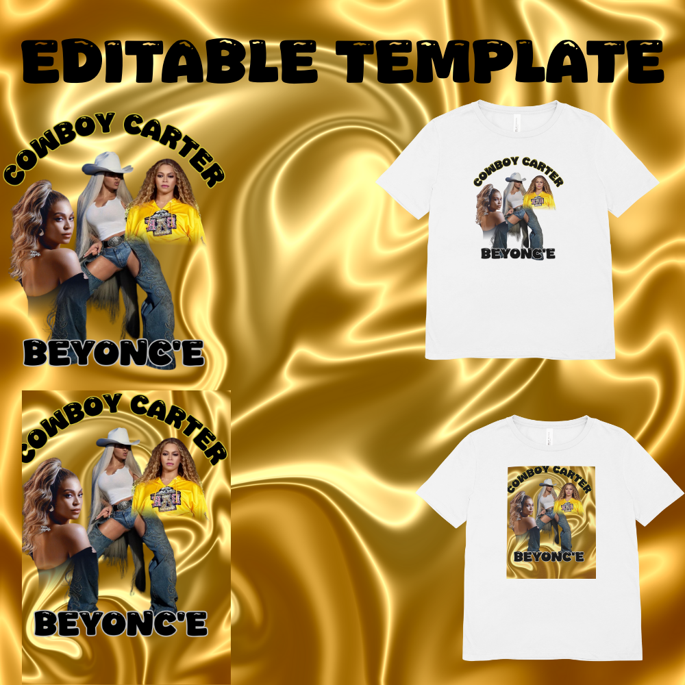 Get in formation with this high-quality digital PNG inspired by Beyoncé's iconic Cowboy Carter era! Perfect for making your own custom t-shirts, tumblers, mugs, tote bags, and more. Whether you're crafting for personal use or creating products to sell, this print-ready sublimation design will turn heads and elevate your collection.