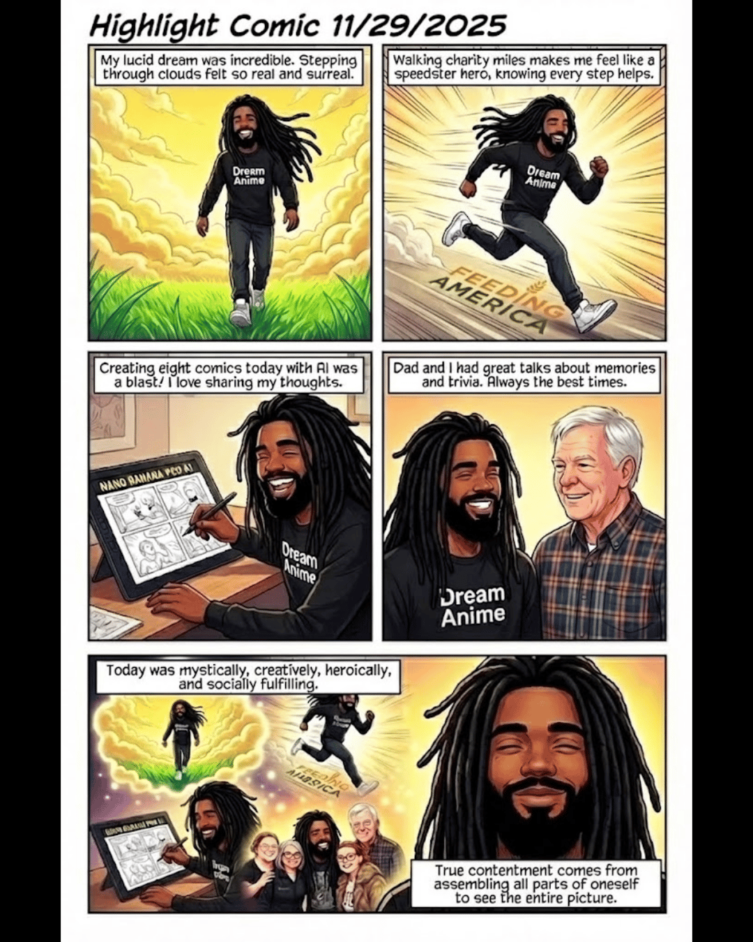 This is a compilation of nine one-page comics that were all created in a single day.