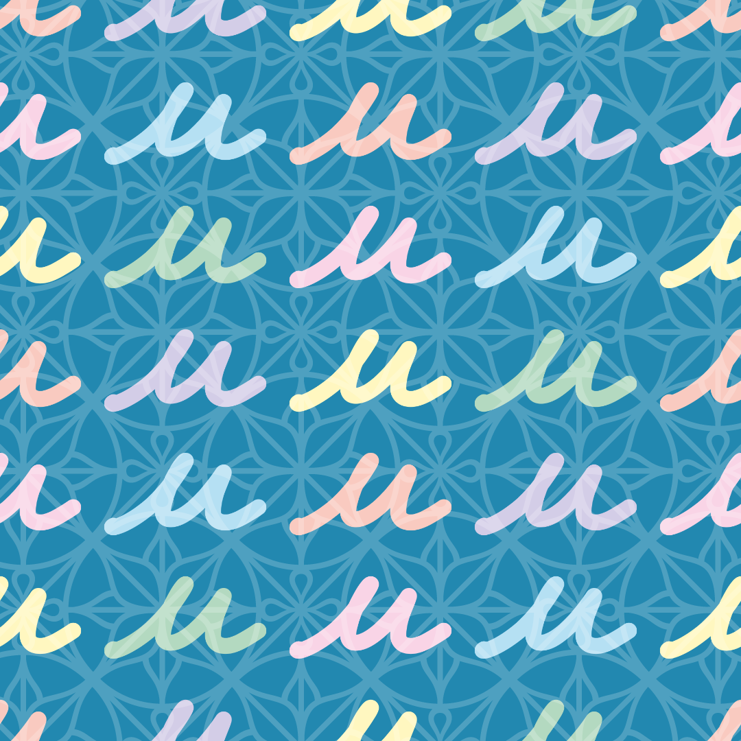 Script letter U vector pattern background. Lower case lettering seamless illustration.