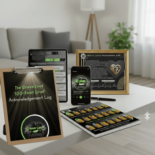 This is the core Grieve Loud experience. You get the map for clarity, plus 31 days of gentle, firm 30-second or less than a minute of audio coaching to move you through the most difficult aspects of your journey, from setting boundaries to finding support.