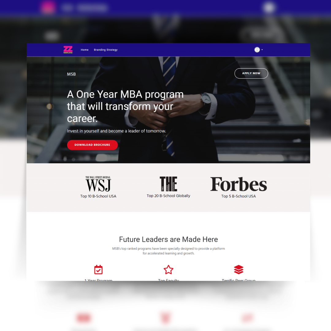 One Year MBA Program Landing Page Template