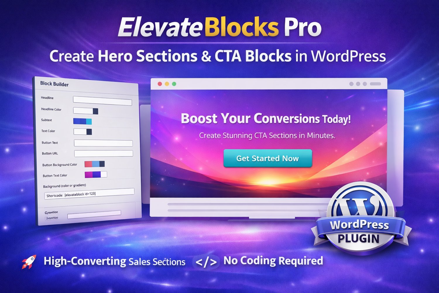 ElevateBlocks Pro β Premium WordPress Hero & CTA Builder Plugin | High-Converting Sales Sections
