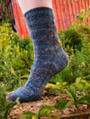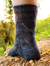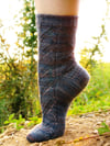 Kick off your sock knitting season with Aguacero socks, featuring a mix of cables and eyelets in a flowing, fresh stitch pattern. Pick a skein of solid or semi-solid sock yarn to show your stitches best. Aguacero Socks are knit from the top down with a traditional heel flap and gusset construction. Four sizes offer a great range of wearability in these delightfully patterned socks.