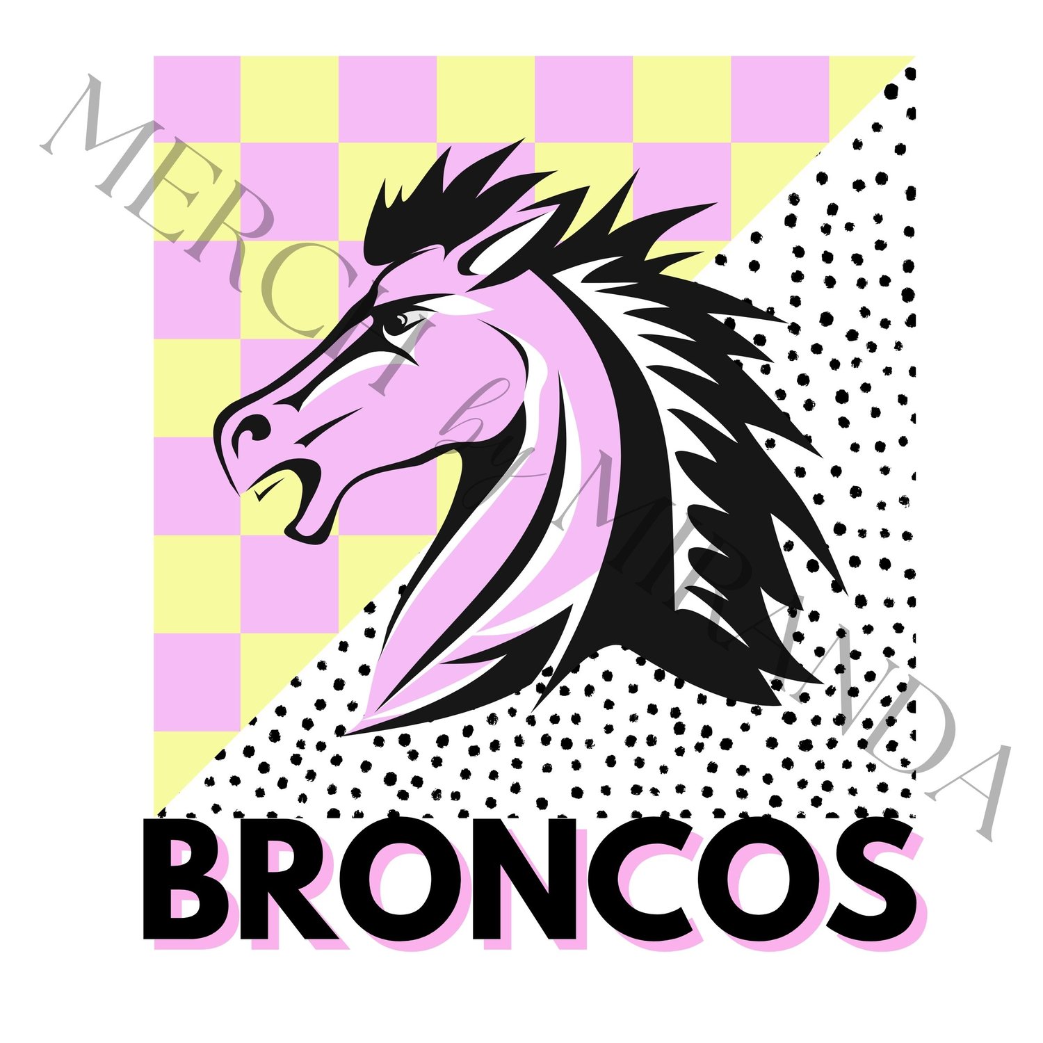 Bronco Mascot - Broncos - Spots - Checkered - Dots - Digital Download