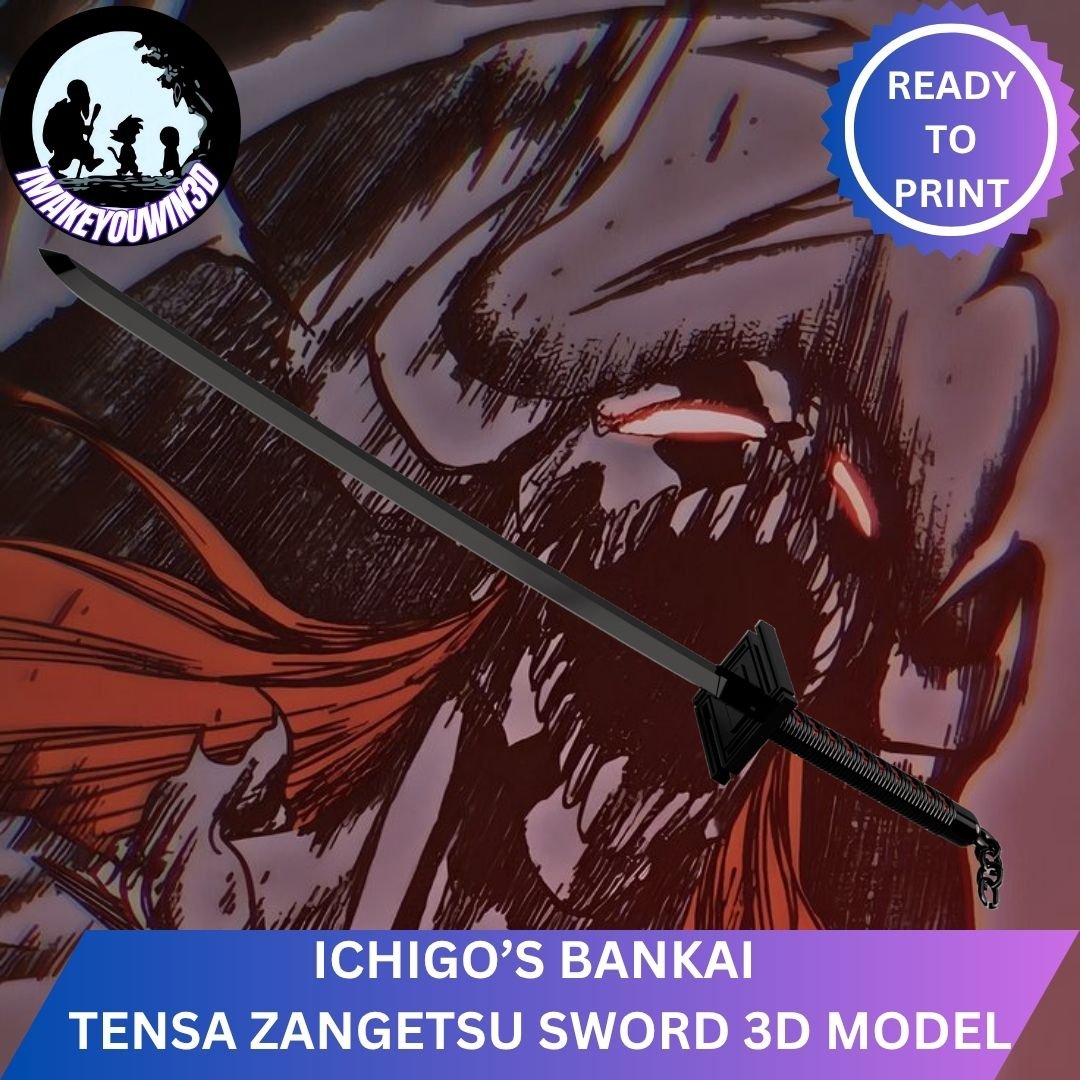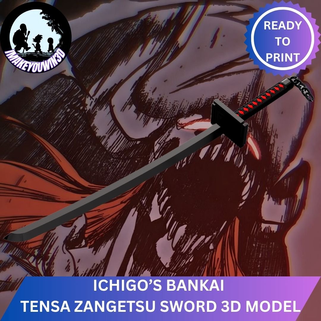 - Precision and Detail: 🎨 This 3D model captures the exact look of Tensa Zangetsu, from its elongated, pitch-black blade to the distinctive chain-wrapped hilt, ensuring that every feature is faithfully represented.