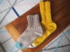 The Parkamoor Socks are knit cuff down (though the pattern is easily adaptable for toe-up construction). The leg features a simple, twisted stitch cable on either side that’s surprisingly addictive, followed by a plain stockinette foot and (optional) contrasting toe. Options for an afterthought heel (my personal favorite) and a slip stitch heel flap and gusset are both included.