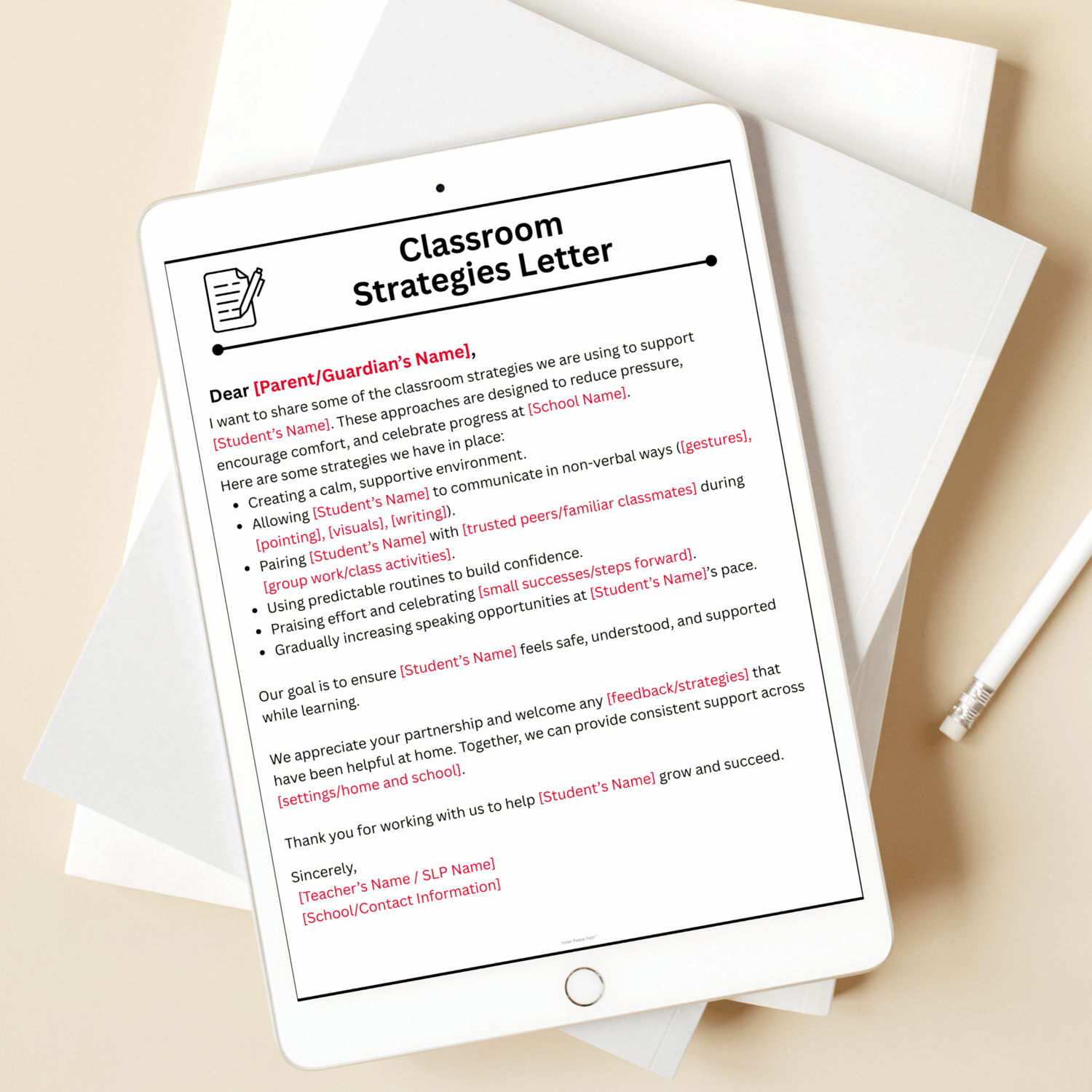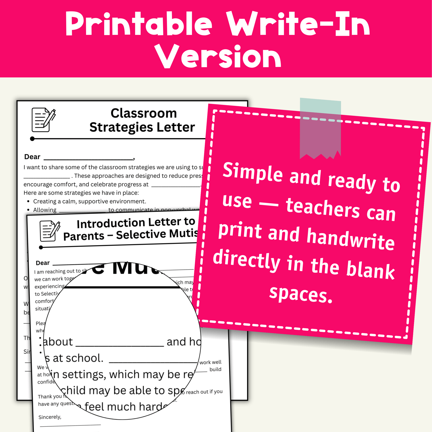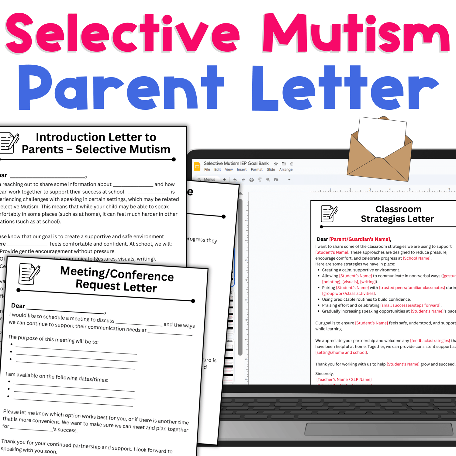 Selective Mutism – Editable Parent Letter Templates