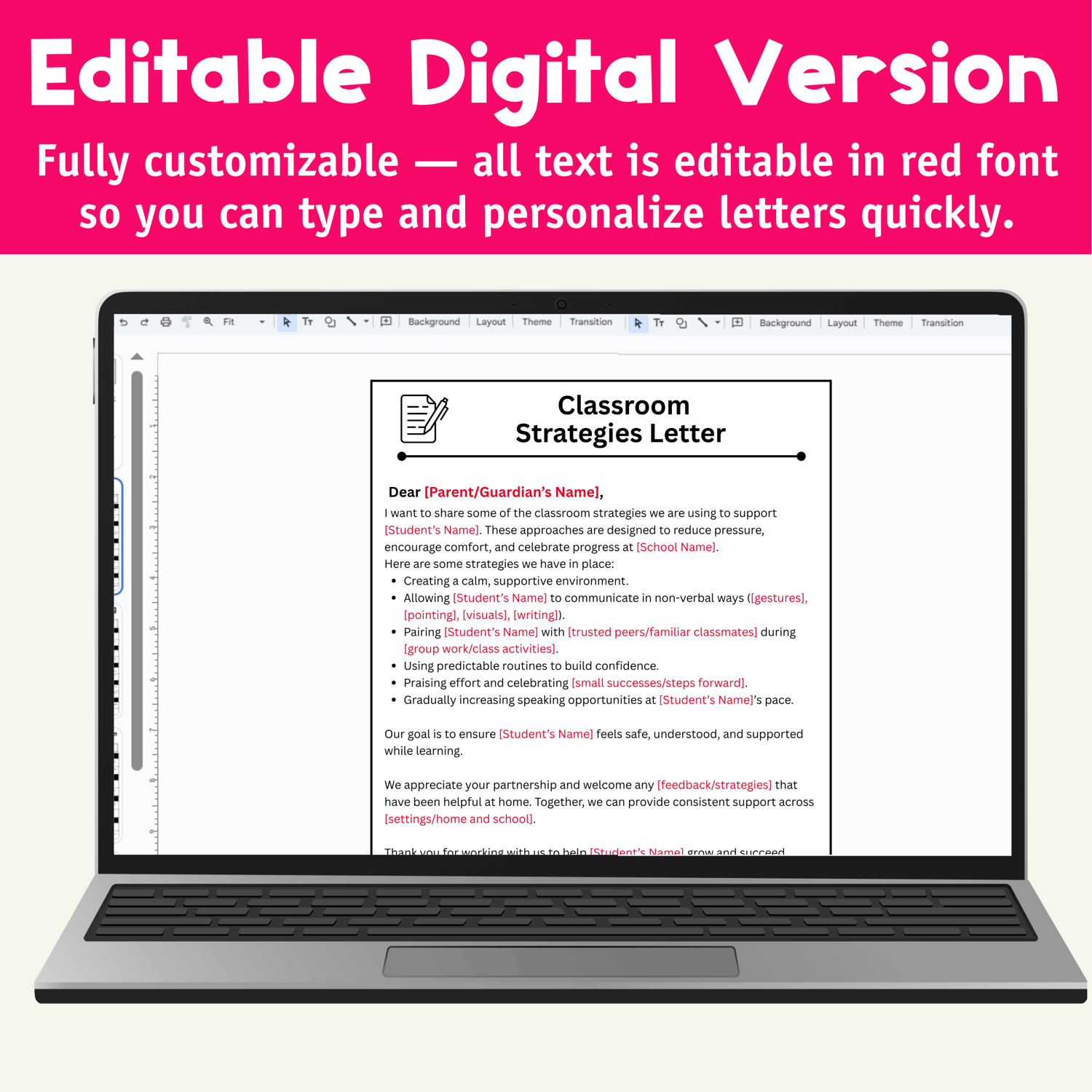✔ Editable version with red text for easy typing and customizing