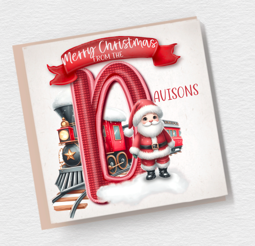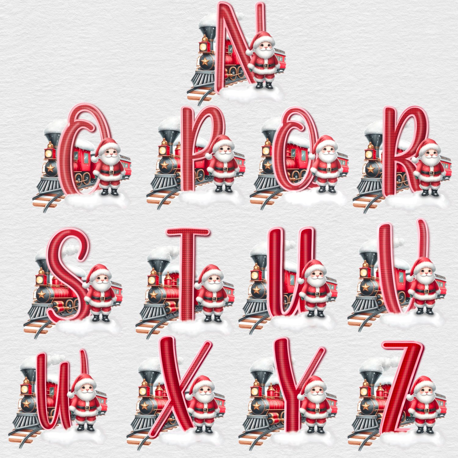 Beautiful red hand painted 3D embossed alphabet; 26 letters, 2 banners + Santa & his express train. Sublimation, print, DTF, UVDTF