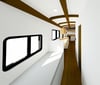 This magic ship bus is inspired by the skeletal haul of a ship for those looking to embody an adventurous lifestyle while living the bus life on the road. The interior squared crown beams give you the feeling that you're in the haul of a modern ship. This tiny home or skoolie design is for a Full Bus - 42ft long. The colors are neutral and minimalist complementing the simple and free life of a nomad.