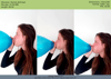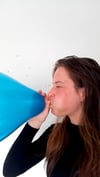 WIth puffy cheeks Rachel b2p's this blue balloon. The loud sound made her drop the camera!
