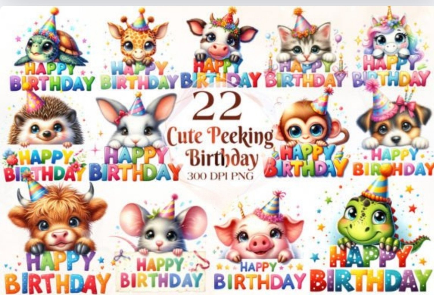 => Peeking Birthday Animal Clipart Bundle: 22 PNG
