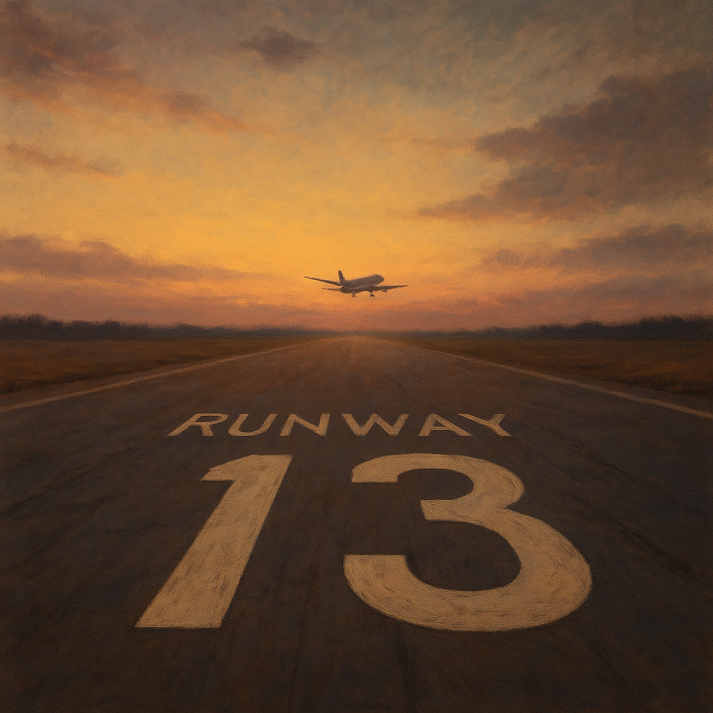 Runway Thirteen is a song about love that took the long way 'round—coded in messages, carried across oceans, and tested by time zones. It's the moment when imagination becomes real, and the person you’ve loved from afar walks through Arrivals, suitcase in hand, heart in tow.