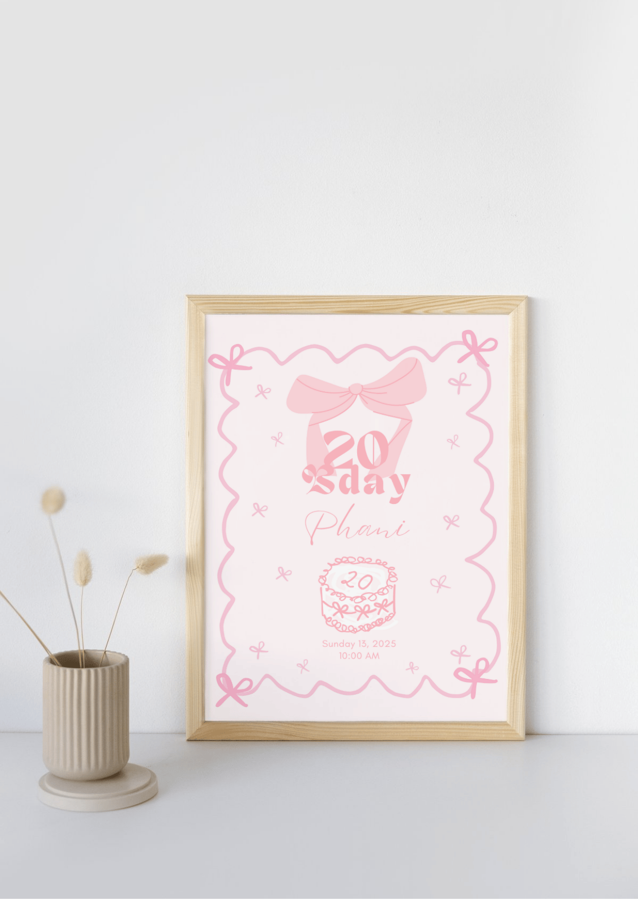 Designed for girls who adore delicate bows, soft pinks, and hand-drawn charm, this digital invitation is perfect for birthdays, tea parties, baby showers or any dreamy celebration.