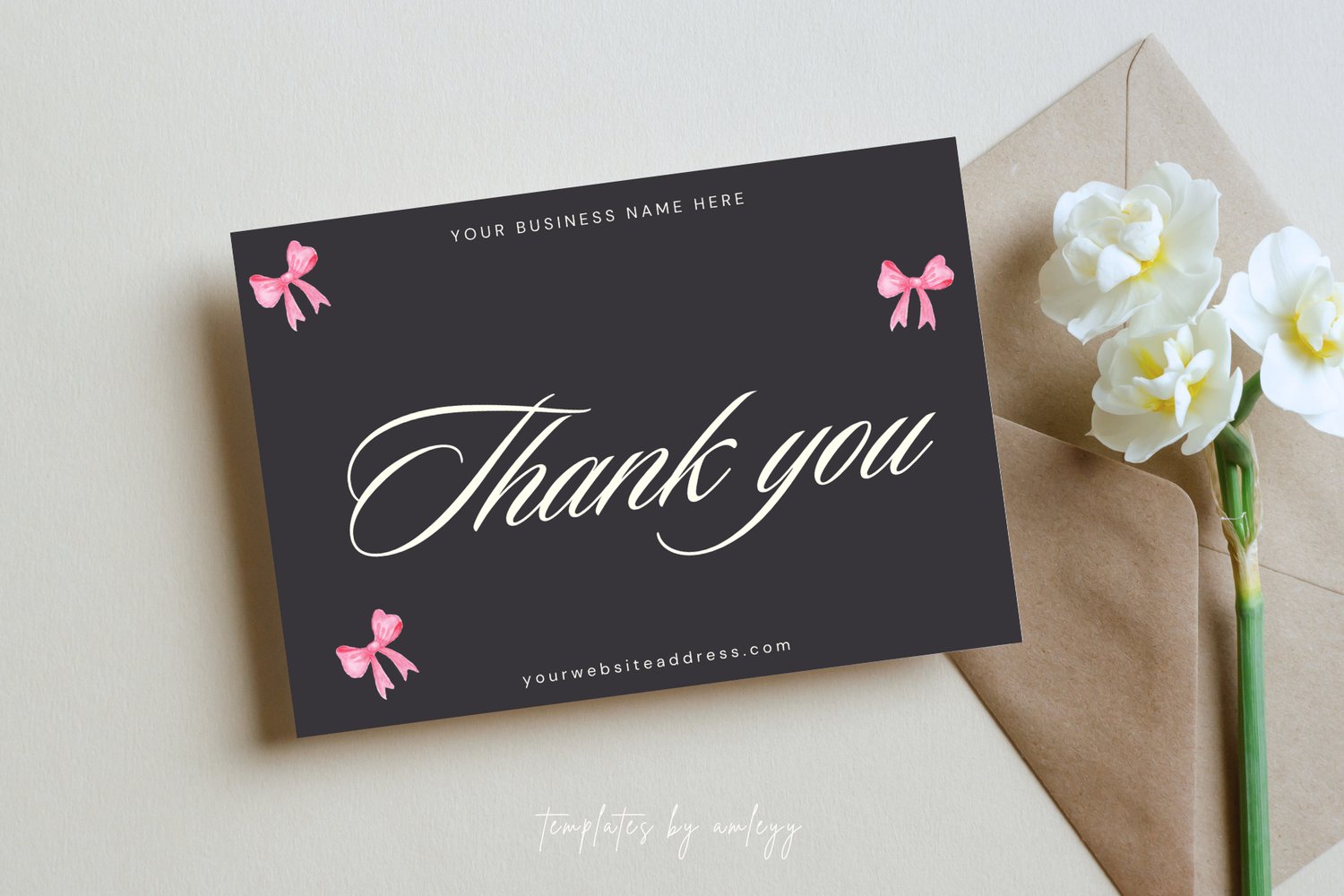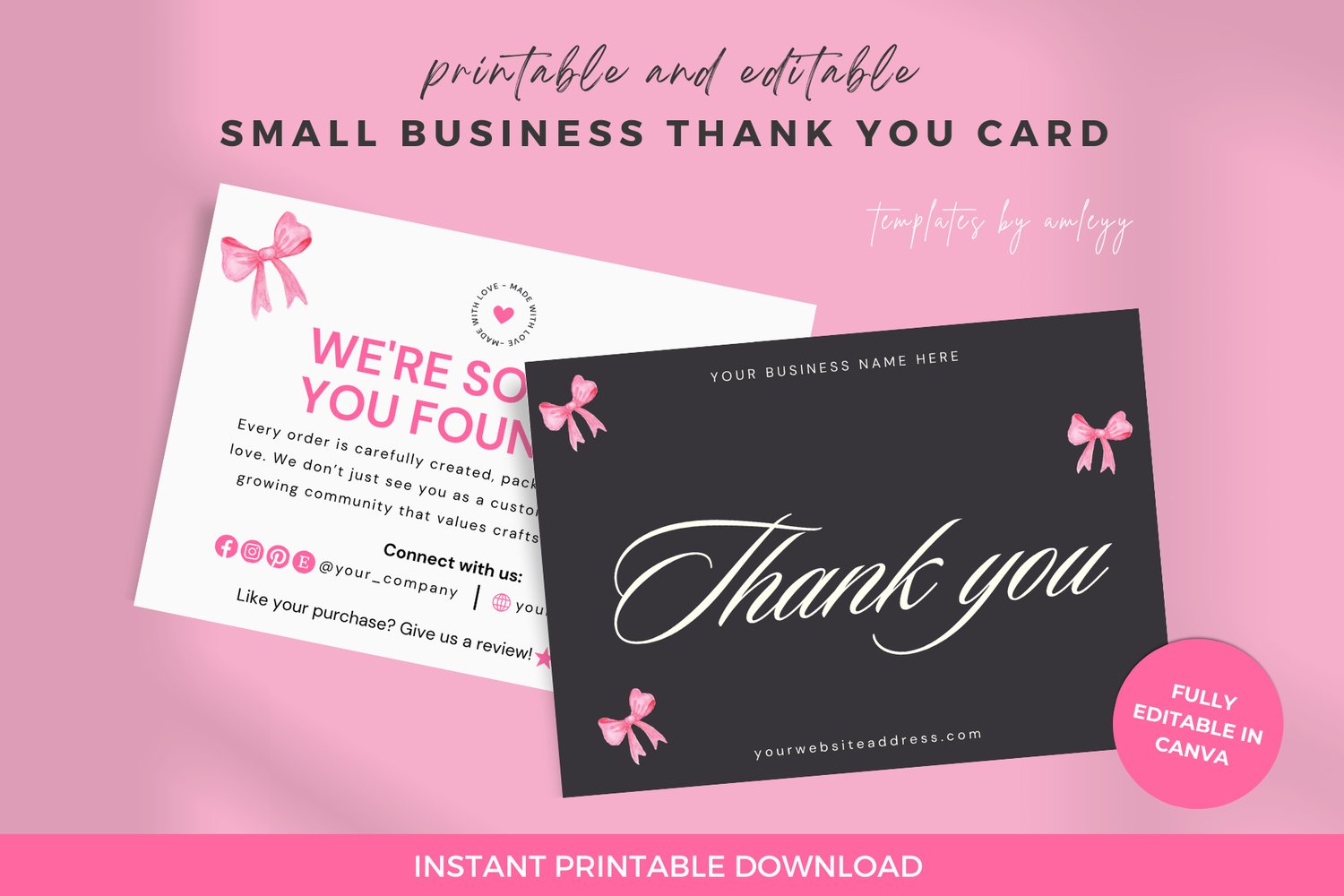 Luxury Coquette Thank You Card Template | Pink Elegant Feminine Canva Editable Design | Printable Thank You Card for Small Business Owners