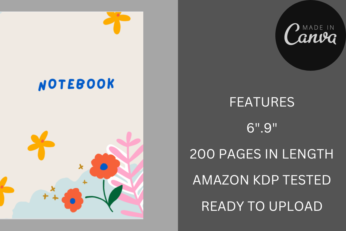 FLOWER KDP LINED PAPER COVER, LOW CONTENT BOOK COVER FOR KDP READY UPLOAD, FLOWER KDP JOURNAL PAPER, FLOWER JOURNAL NOTEBOOK MOCKUPS, KDP CANVA NOTE