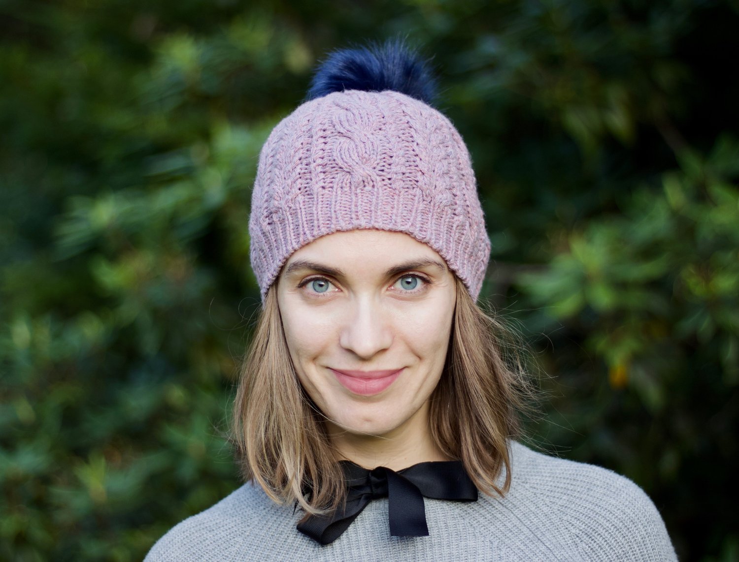 Hati is a cabled, warm hat featuring a rich texture. It can be worked in two ways: using a single colour of aran weight yarn to create a solid hat, or using two strands of DK weight yarn in two different colours to create a striped hat.