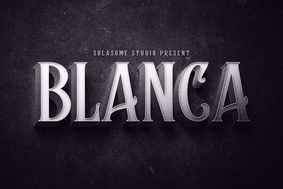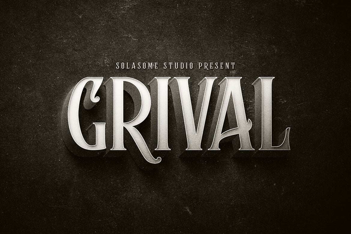 Bold, vintage-inspired design with a classic and dramatic feel. The letterforms are elegant, with intricate curves and flourishes, giving it a sophisticated, almost cinematic quality.