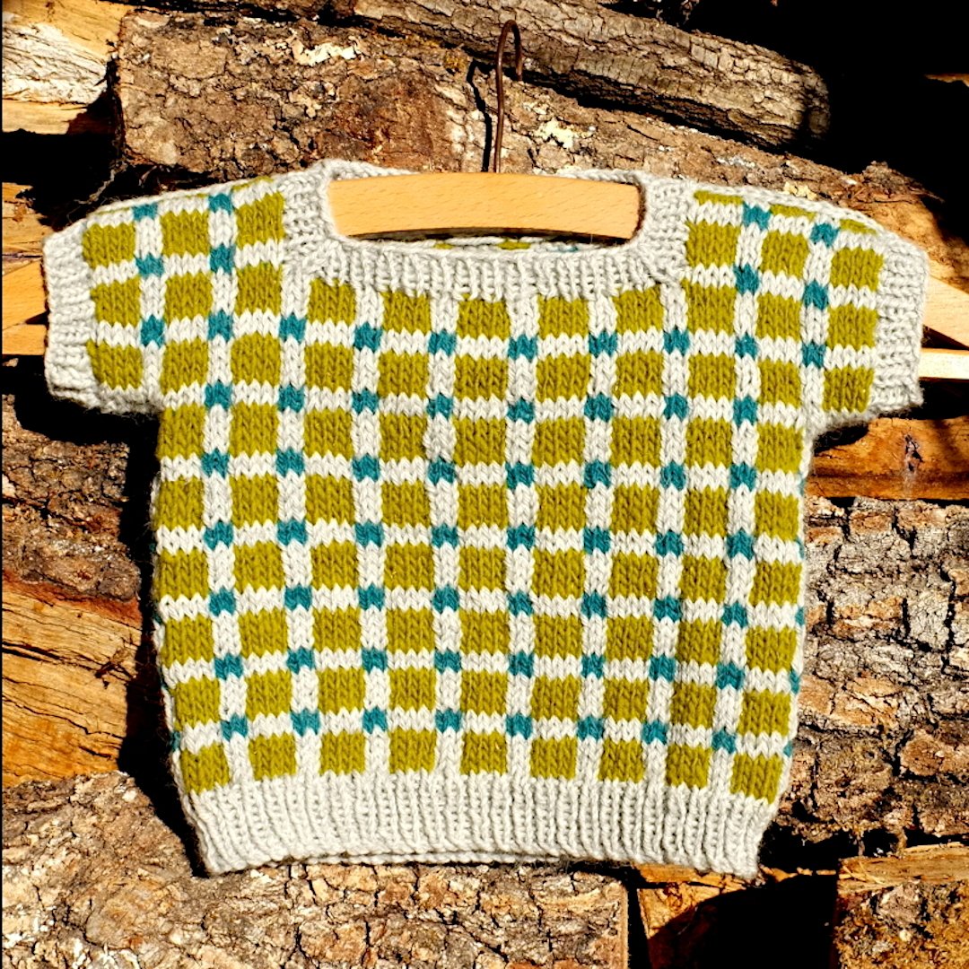 Only two of the three colours are used at one time. The shaping is minimal, the patterning is simple, but the Quadrant is certainly not square! It’s a cool and stylish tee for the little ones.