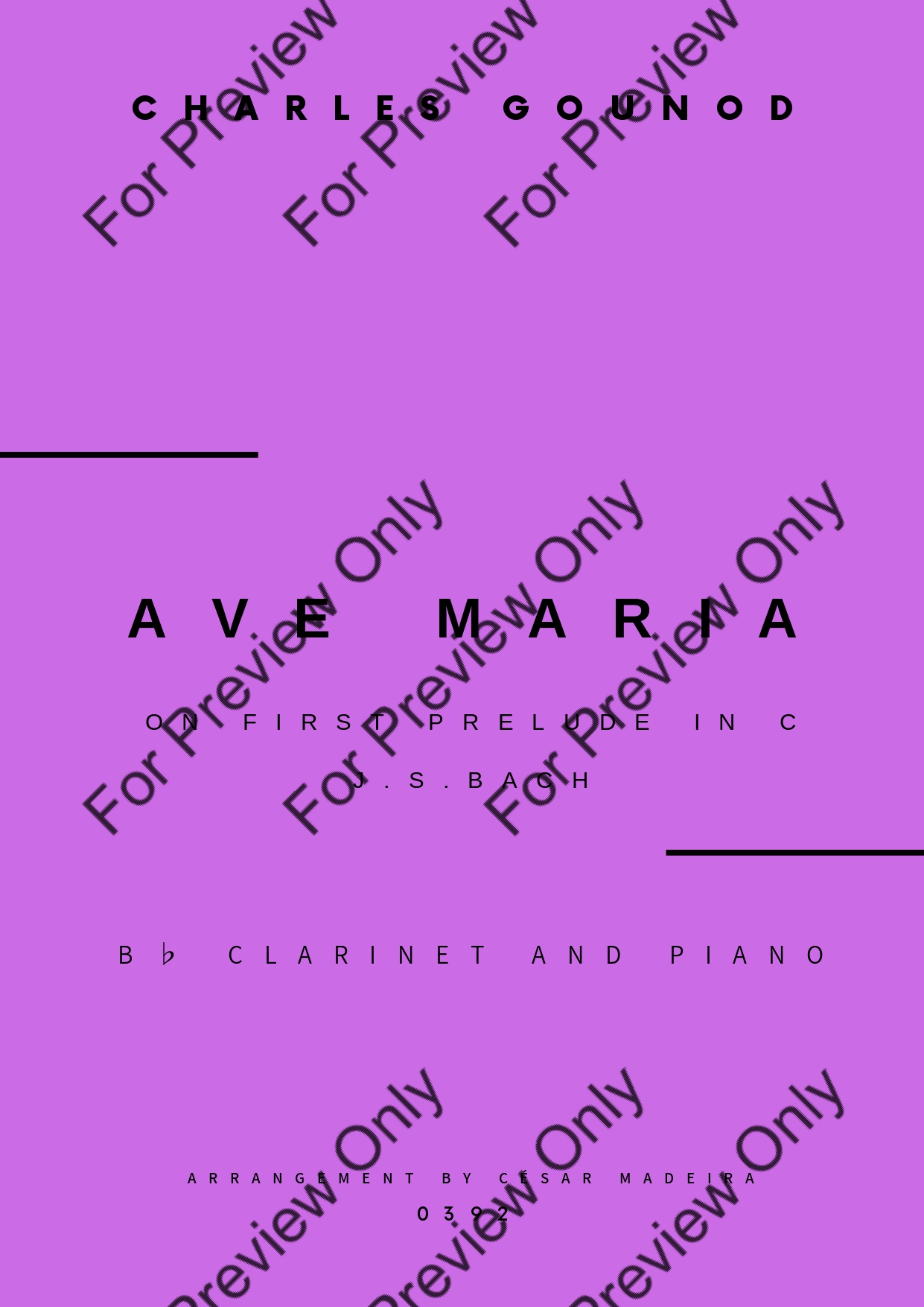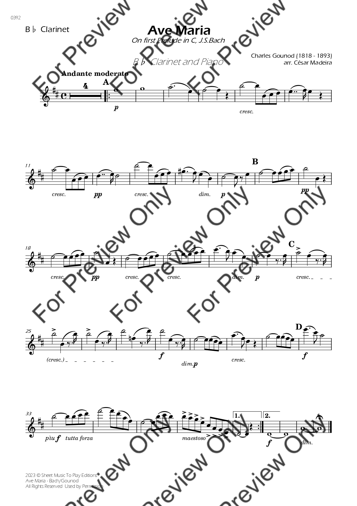 Ave Maria by Charles Gounod. Arrangement for Bb Clarinet and Piano. With Full Score and Individual Parts. Have fun!