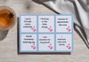 Each card features a minimalist design with a dusty rose background, soft blue accents, and a delicate heart outline π€ for a calming, serene feel.