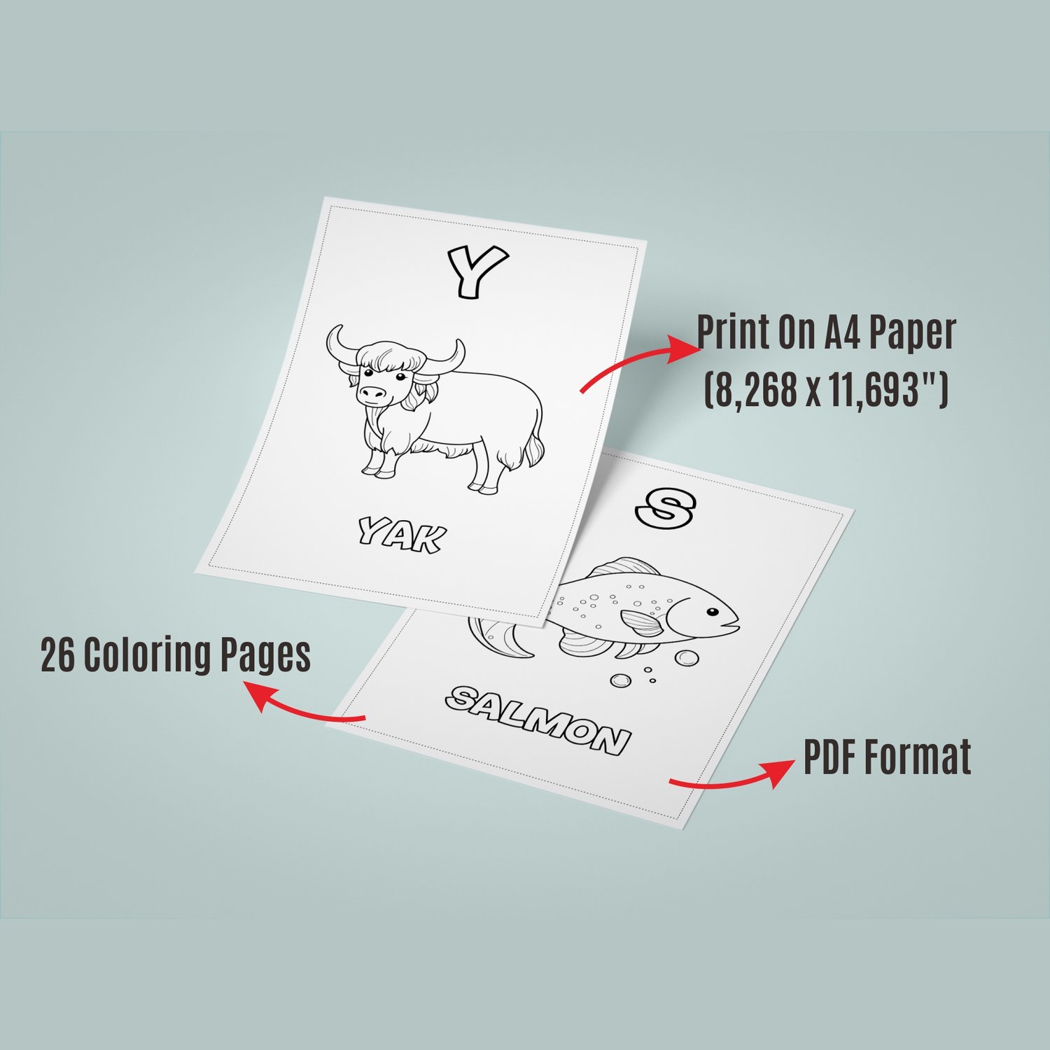26 Animals from A-Z Coloring Pages For Kids, Toddlers, Preschoolers Printable