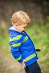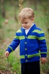 Carabe Kid is a seamless striped cardigan knit from the top down.