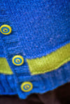 The cardigan is intended to be worn with about 2.5-5 cm / 1-2” of positive ease. When you choose a size do not rely solely on age but measure your child’s chest and choose the size about 2.5-5 cm / 1-2” larger than the actual chest measurement.