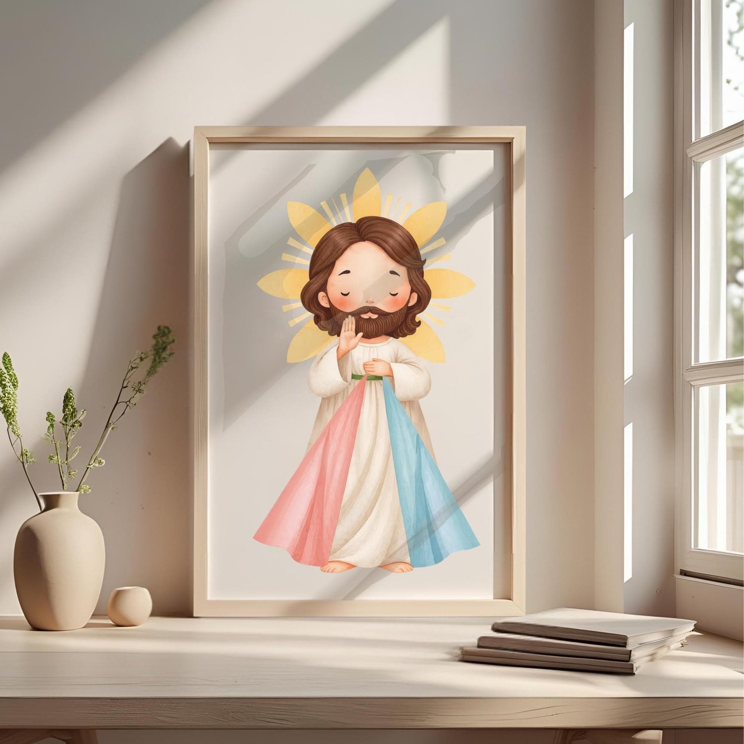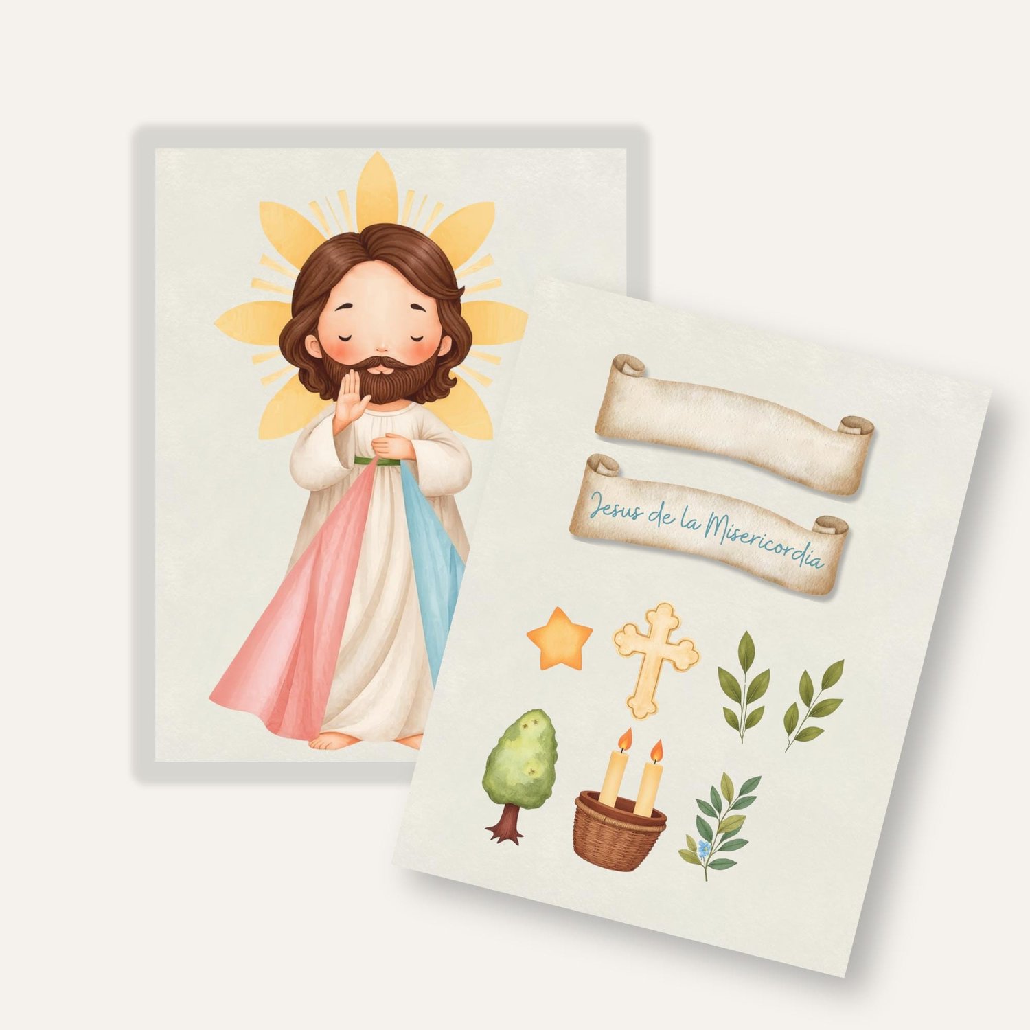 Este kit te ofrece un hermoso Icono Digital de Jesús de la Misericordia con un diseño dulce e inspirador, ideal para tus creaciones religiosas y devocionales.